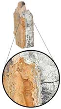 This wood-boring insect can damage both softwoods and hardwoods. The larvae of the beetle bore through the wood digesting the cellulose. After about three years they form a pupal chamber near the surface and there change into adult beetles.